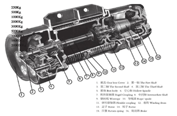 CD1型電動(dòng)葫蘆主要結(jié)構(gòu):減速器,運(yùn)行機(jī)構(gòu),卷筒裝置,吊鉤裝置,聯(lián)軸器,軟纜電流引入 器,限位器.電機(jī)采用錐形轉(zhuǎn)子電動(dòng)機(jī),集動(dòng)力與制動(dòng)力于一體.