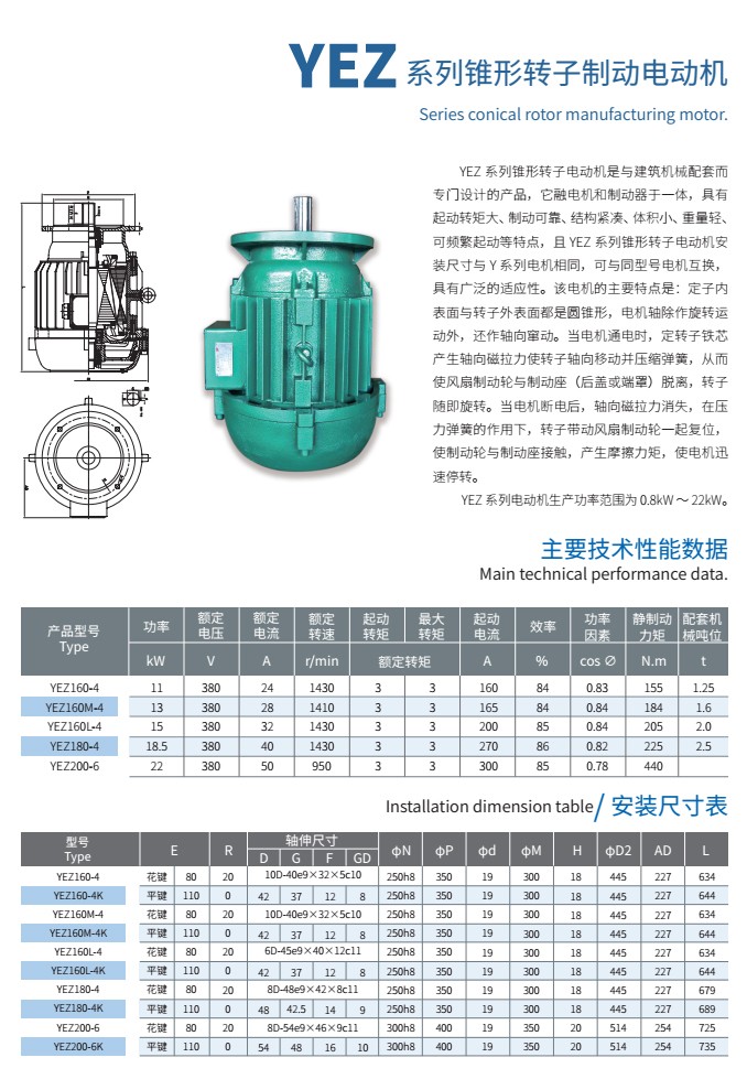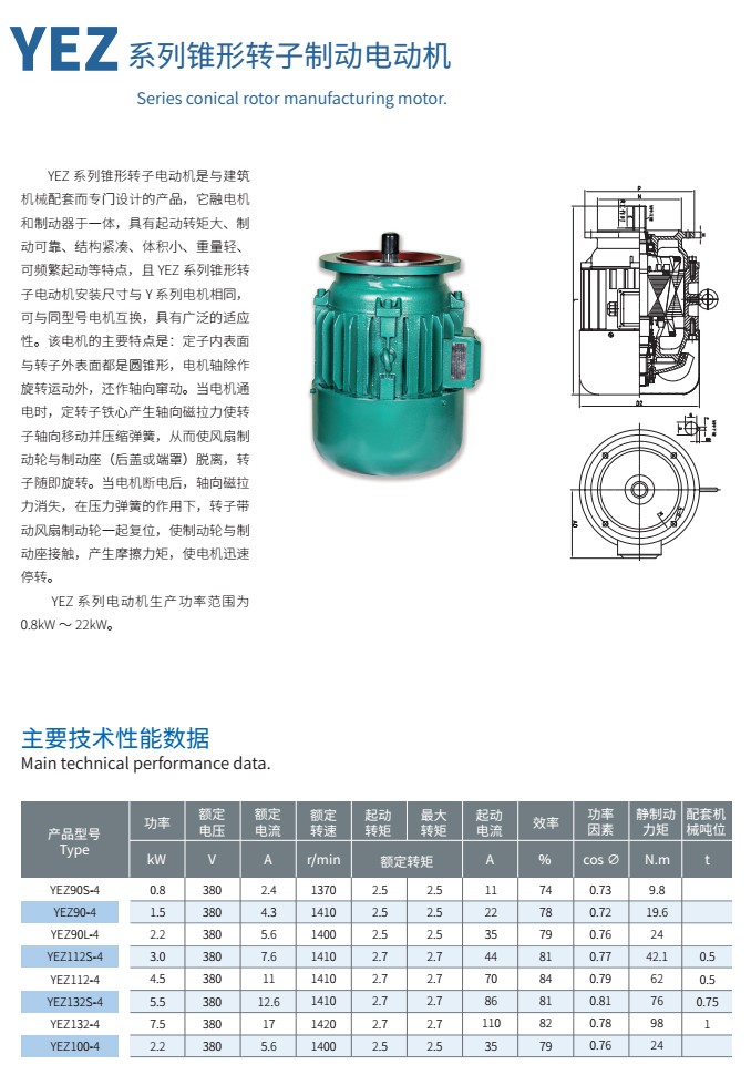 YEZ系列錐形轉(zhuǎn)子制動電動機